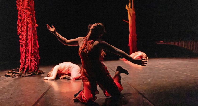 Il y a déjà ces corps qui suivent pas à pas un mantra défini par la chorégraphe : «La nature est un chaos en mouvement.» Alors, dans un décor minimaliste délimité par trois arbres étranges, filant du noir à l’orangé et imaginés par Agnes Hamvas, ce sont cinq danseuses (Manuela Hierl, Marla King, Noa Nies, Aurore Mettray et Marine Tournet) qui se répondent selon la logique du végétal : non linéaire et fluide. Des écosystèmes vivants où chacun trouve sa place dans un jeu d’échange et de réciprocité. «C’est une sorte d’organisme qui se métamorphose, mais en étant toujours à l’écoute des éléments qui le composent», précise Elisabeth Schilling, avant un définitif «toute action à une conséquence», à l’instar des dominos ou du fameux «effet papillon».