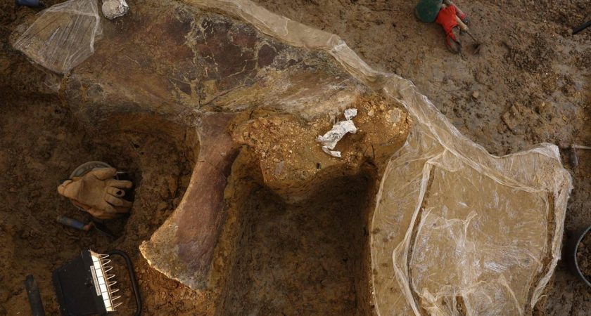 Une omoplate de plus d’un mètre à côté d’une ribambelle d’os tout aussi colossaux et encore partiellement enfouis… Bienvenue sur l’un des plus importants gisements de fossiles de dinosaures au monde dans le sud-ouest de la France.