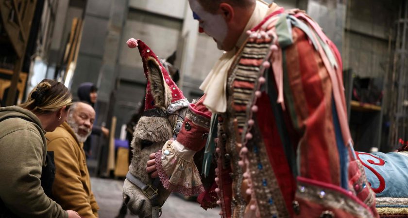 Avec ses poils gris ébouriffés, l’équidé s’est fait un nom à l’opéra de New York, où elle joue depuis 2022 dans des productions classiques. Dans l’acte II de La Bohème, un opéra italien offrant un portrait populaire et déchirant du Paris du XIXe siècle, Wanda se produit ainsi aux côtés de centaines d’artistes. Dans une scène grouillante de marché, l’ânesse, vêtue d’un collier de froufrous et d’un éclatant chapeau tire la charrette bariolé du vendeur de jouets Parpignol, accompagnée de dresseurs également costumés.