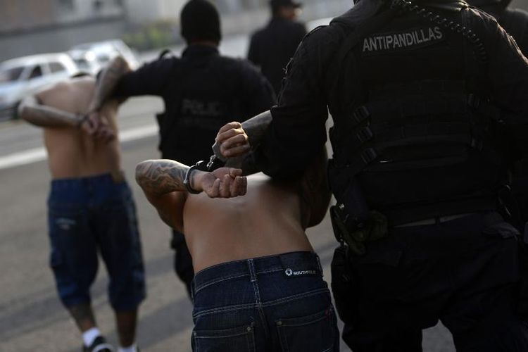 776355-des-membres-de-la-mara-barrio-18-arretes-lors-d-une-operation-de-police-a-san-salvador-le-12-mai-201 De: Alexandra Parachini Dans Mis à jour le 16/05/15 10:58 | Publié le 16/05/15 10:58 Des membres de la mara Barrio 18 arrêtés lors d'une opération de police à San Salvador, le 12 mai 2015. (Photo : AFP) 2015-05-16 Alexandra Parachini