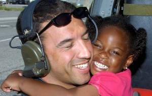 La petite fille qui lui avait jeté les bras autour du cou, le 7 septembre 2005, retrouvera bientôt le militaire venu en hélicoptère la sauver. (photo AFP)