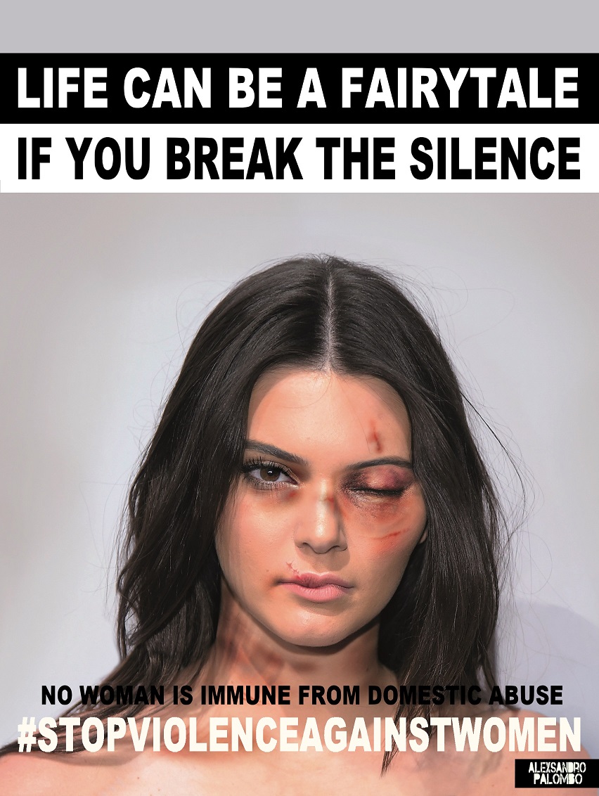 Accueil | Violences faites aux femmes : un artiste "défigure" des stars | Kendall Jenner Life Can Be A Fairytale #BreakTheSilence Contemporary Art Poster Domestic Violence Women Abuse Social Campaign #StopViolenceAgainstWomen #WomenRights by Artist aleXsandro Palombo Web