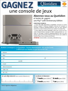 Grand concours Playstation4 De: Alexandra Parachini Dans Mis à jour le 19/12/14 19:27 | Publié le 19/12/14 19:27 2014-12-19 Alexandra Parachini