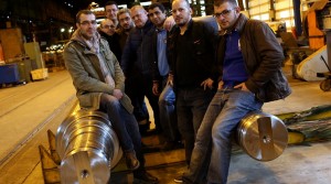 Sur les coups de 17h mercredi, il ne reste plus grand monde dans les hangars de l’usine. La fête est finie. Une dernière photo devant un cylindre fabriqué sur place, histoire de se rappeler qu’on y a fait du bon boulot… (Photo Rl/Julio Pelaez)
