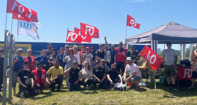 Pour les clients du magasin, il était difficile de ne pas les remarquer à l’entrée du parking. Avec leurs barnums gris et les drapeaux rouges flottant au vent, frappés du sigle FO. Après leurs collègues de l’entrepôt la veille, les salariés de la surface de vente d’Ikea La Maxe ont à leur tour débrayé dans la matinée de ce 21 juin. Ils étaient ainsi une quarantaine, sur les 200 employés du magasin, à manifester leur mécontentement quant à la tournure des NAO (négociations annuelles obligatoires) qui se sont achevées voilà peu.