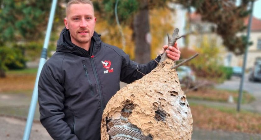 Cette année, la Moselle a vu sa population de frelons asiatiques grandement augmenter, au point d’alimenter une certaine psychose. Nous avons accompagné Kévin Gaertner, un professionnel spécialisé dans l’élimination des nuisibles, lors d’une intervention pour observer le travail réalisé sur un nid actif.