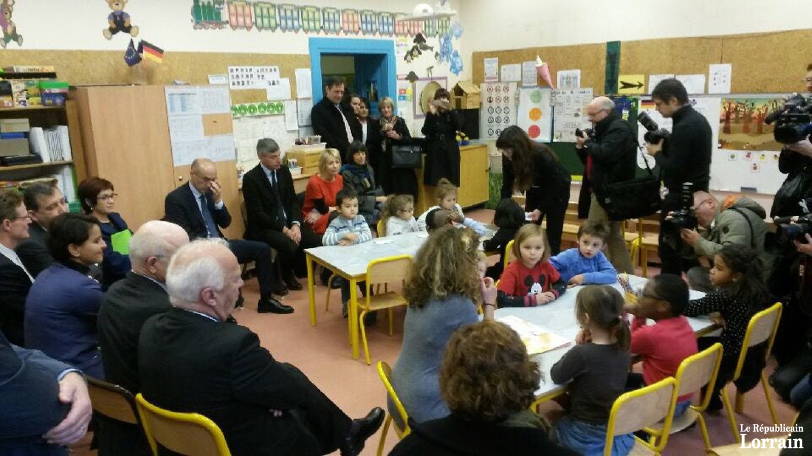 Discrète, Najat Vallaud-Belkacem (en violet, assise sur la gauche), ministre de l’Éducation nationale, a assisté à un cours d’allemande ce lundi matin, à Metz. (photo Charline Poullain)