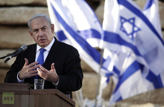 Israeli Prime Minister Benjamin Netanyahu attends the annual memorial ceremony for David Ben-Gurion, Israel’s first prime minister, in the southern Israeli kibbutz of Sde Boker on November 20, 2012. AFP PHOTO / POOL / DAN BALILTY