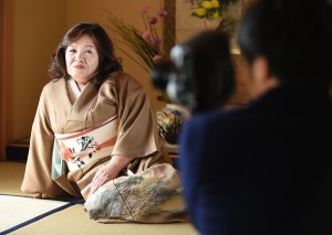 Yasue Tomita, 61, sits on a tatami floor while posing for a photographer as she makes her debut as a porn actress at a studio in Tsurugashima, Saitama prefecture, on March 17, 2015. Dressed in a kimono and kneeling silently on a tatami mat floor, 61-year-old Yasue Tomita looks as if she might be about to perform a Japanese tea ceremony — instead she’s debuting as a porn actress. AFP PHOTO / Toru YAMANAKA
