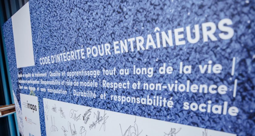 L’INAPS a profité de cette soirée pour présenter aux lauréats son nouveau document «LTCD – Long Term Coach Development», ainsi que le code d’intégrité pour entraîneurs. De nombreux diplômés ont saisi l’occasion pour participer à un acte symbolique en signant un panneau reprenant ce code d’intégrité et en s’engageant ainsi à en respecter les valeurs.