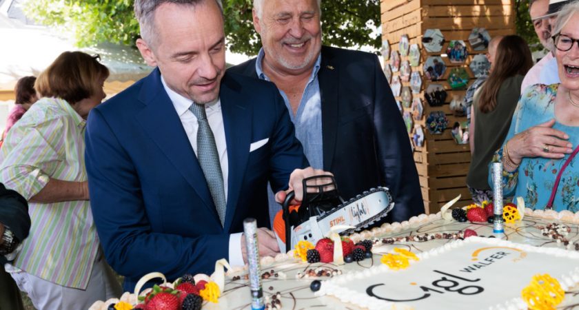 Après les discours de circonstance et la signature du Livre d’or, le ministre a coupé le gâteau avec un outil peu conventionnel (photo) aux côtés du président de l’ASBL depuis 2018, Michel Feidt, et a posé pour les caricaturistes présents. Un grand barbecue festif a suivi.