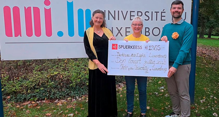 Le Chœur de l’université du Luxembourg a remis un don de 1 365 euros à trois associations œuvrant pour la santé mentale au Luxembourg. La somme a été collectée lors de son concert organisé l’été dernier à Dudelange.