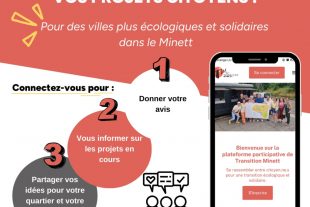 L’asbl Transition Minett lance, ce mardi 21 janvier, sa plateforme participative afin de rassembler les citoyens autour de projets écologiques et solidaires. Ce nouveau site nommé participation.transition-minett.lu concerne les habitants de la ville d’Esch-sur-Alzette, les personnes ...