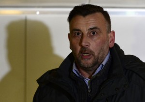 FILES – Lutz Bachmann, one of the main organisers of German right-wing populist movement PEGIDA (Patriotic Europeans Against the Islamisation of the Occident) is pictured at the start of their twelfth march in Dresden, eastern Germany on January 12, 2015. Bachmann, Germany’s PEGIDA leader says to step down after Hitler picture on January 21, 2015. AFP PHOTO / ROBERT MICHAEL