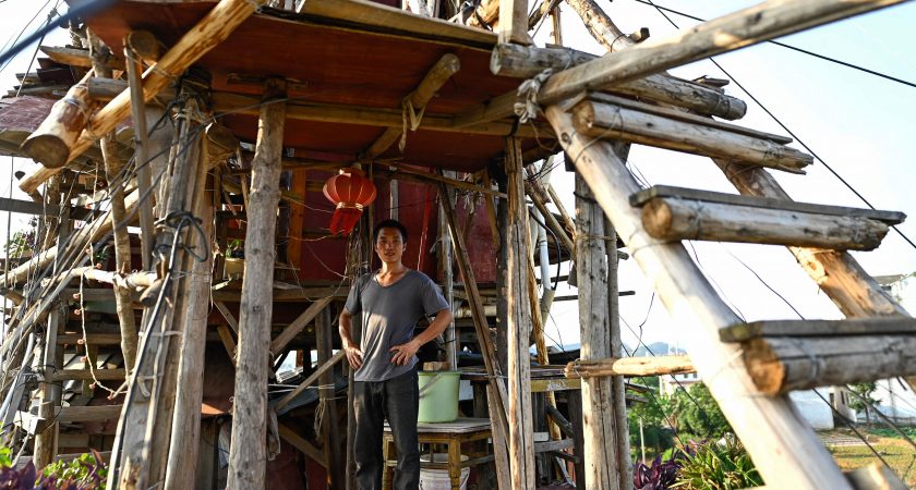 Les autorités ont rasé la majeure partie du village de Chen Tianming, situé dans la province du Guizhou (sud-ouest), en 2018, pour construire un projet touristique dans cette région connue pour ses rizières spectaculaires et ses paysages montagneux. Mais Chen Tianming, 42 ans, a refusé de partir. Après l’échec du projet, il a défié une série d’avis de démolition pour bâtir, étage par étage, sa demeure excentrique.