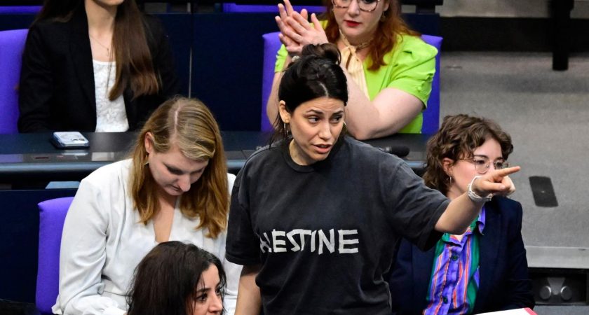 Une députée de la gauche radicale Die Linke, Cansin Köktürk, a été invitée par la présidente du Bundestag, Julia Klöckner, à quitter l’hémicycle car elle portait un tee-shirt gris sur lequel était imprimé « Palestine ».