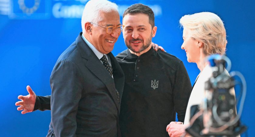 Volodymyr Zelensky a été chaleureusement accueilli par le président du Conseil européen, Antonio Costa, et la présidente de la Commission européenne, Ursula von der Leyen. (photo AFP)