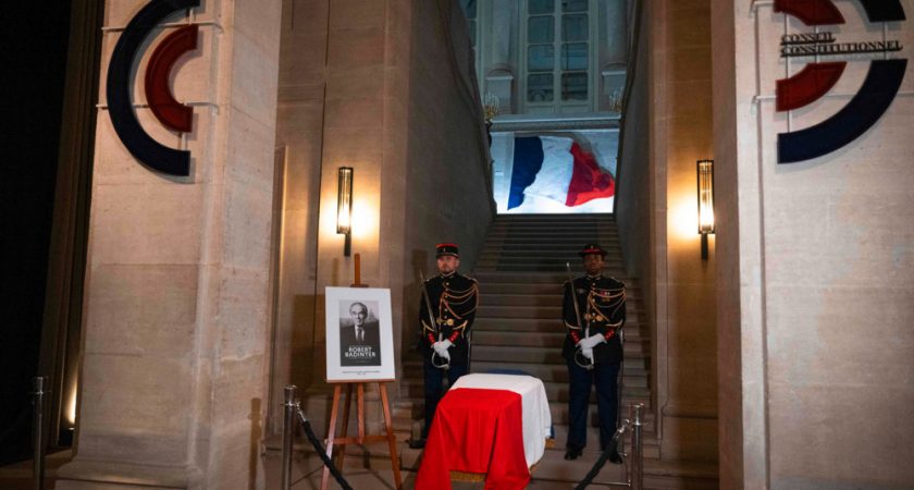 Robert Badinter, l’artisan de l’abolition de la peine de mort en France, entre jeudi soir au Panthéon, 20 mois après son décès, lors d’une cérémonie solennelle présidée par Emmanuel Macron. Prévue de longue date, cette cinquième panthéonisation sous ses mandats sera une parenthèse en pleine crise politique pour le président Macron, qui doit décider quoi faire pour sortir le pays de l’impasse. L’hommage à l’ancien avocat et garde des Sceaux a débuté mercredi soir par une veillée funèbre au Conseil constitutionnel qu’il présida de 1986 à 1995, parmi les nombreux engagements de sa vie.