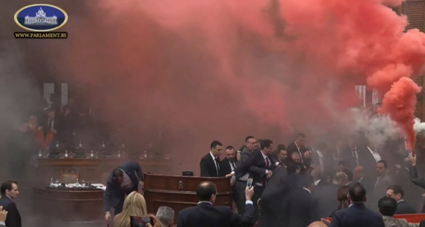 Des images partagées en ligne montrent des membres de l’opposition tenant des fusées éclairantes colorées et lançant ce qui semble être des bombes fumigènes de couleur rose et noire pendant cette session houleuse. La présidente du Parlement, Ana Brnabic, a réagi en fustigeant l’opposition pour ces actes. «Votre révolution de couleur a échoué et ce pays vivra, ce pays travaillera, et ce pays continuera à gagner», a-t-elle lancé, selon des images retransmises en direct.