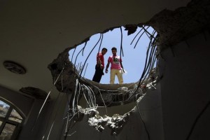 742426-des-yemenites-regardent-a-travers-le-toit-d-une-maison-eventree-la-veille-par-une-frappe-aerienne-de