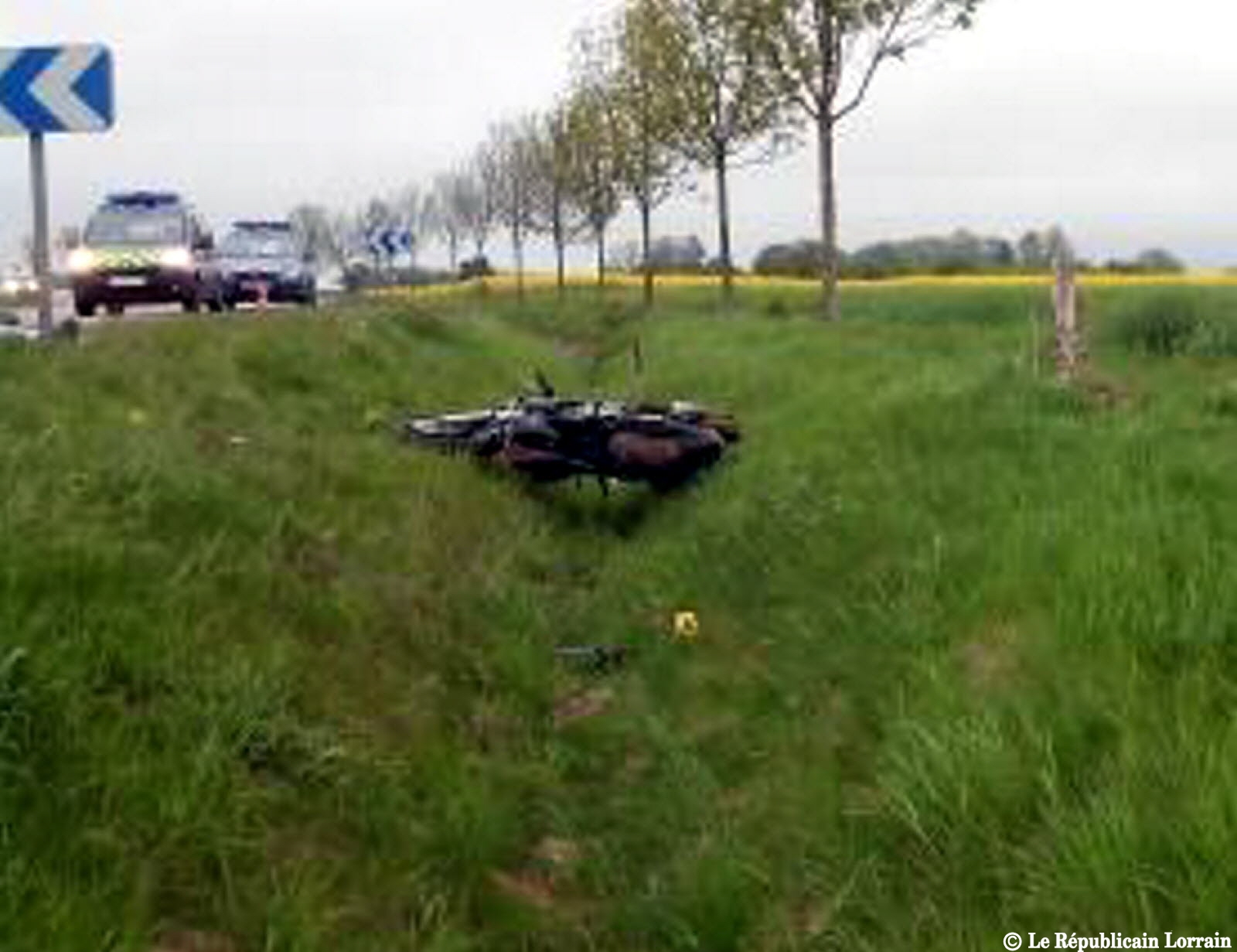 Le motard a percuté un panneau de signalisation, aux alentours de 6h30, samedi matin. (photo DR)