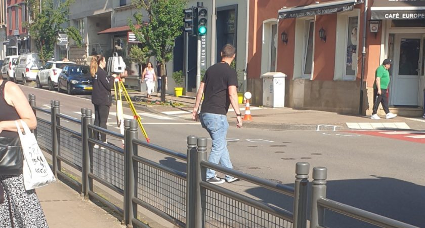 Quand une artère aussi importante que la rue Emile-Mark à Differdange est bloquée une demi-heure durant, cela ne passe pas inaperçu, ne serait-ce que pour les embarras de circulation occasionnés au carrefour qui conduit les voitures à Niederkorn, Oberkorn et au centre-ville. L’opération avait été annoncée sur l’application de la Ville de Differdange, mais les passants bloqués sur les trottoirs n’étaient pas forcément au courant de sa tenue ou de sa teneur. Les marquages au sol au croisement de la rue Émile-Mark, qui mène au centre-ville, et de la rue Michel-Rodange, qui mène au parc Gerlache, et la présence de deux agents de la police technique – c’était inscrit sur le dos de l’un d’eux, une femme – donnaient pourtant des indices assez évidents sur le drame qui s’était produit là et la nécessité de réunir le maximum d’éléments pour documenter ce qui avait été un accident mortel.