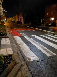 Les traces de freinage ont noirci le passage piéton. (Photo : M. S.)