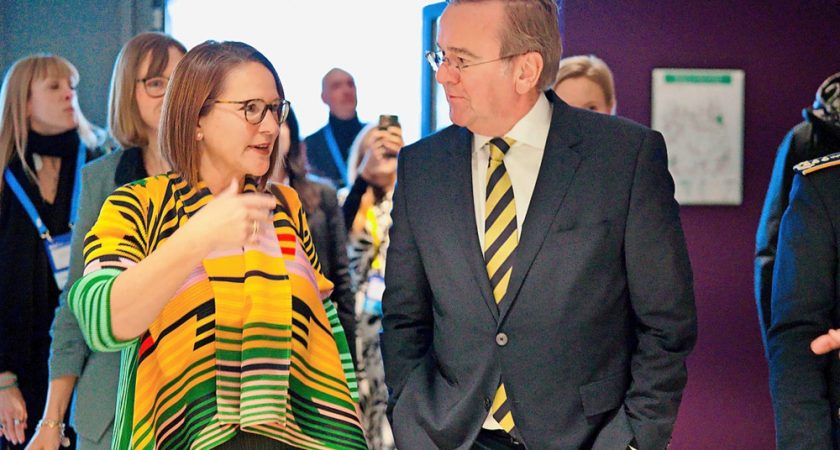 Avec Irene Fellin, représentante spéciale du secrétaire général de l’OTAN pour les femmes, la paix et la sécurité, Yuriko Backes a discuté de l’importance d’une participation pleine, égale et significative des femmes à la sécurité et à la défense pour parvenir à une paix durable.