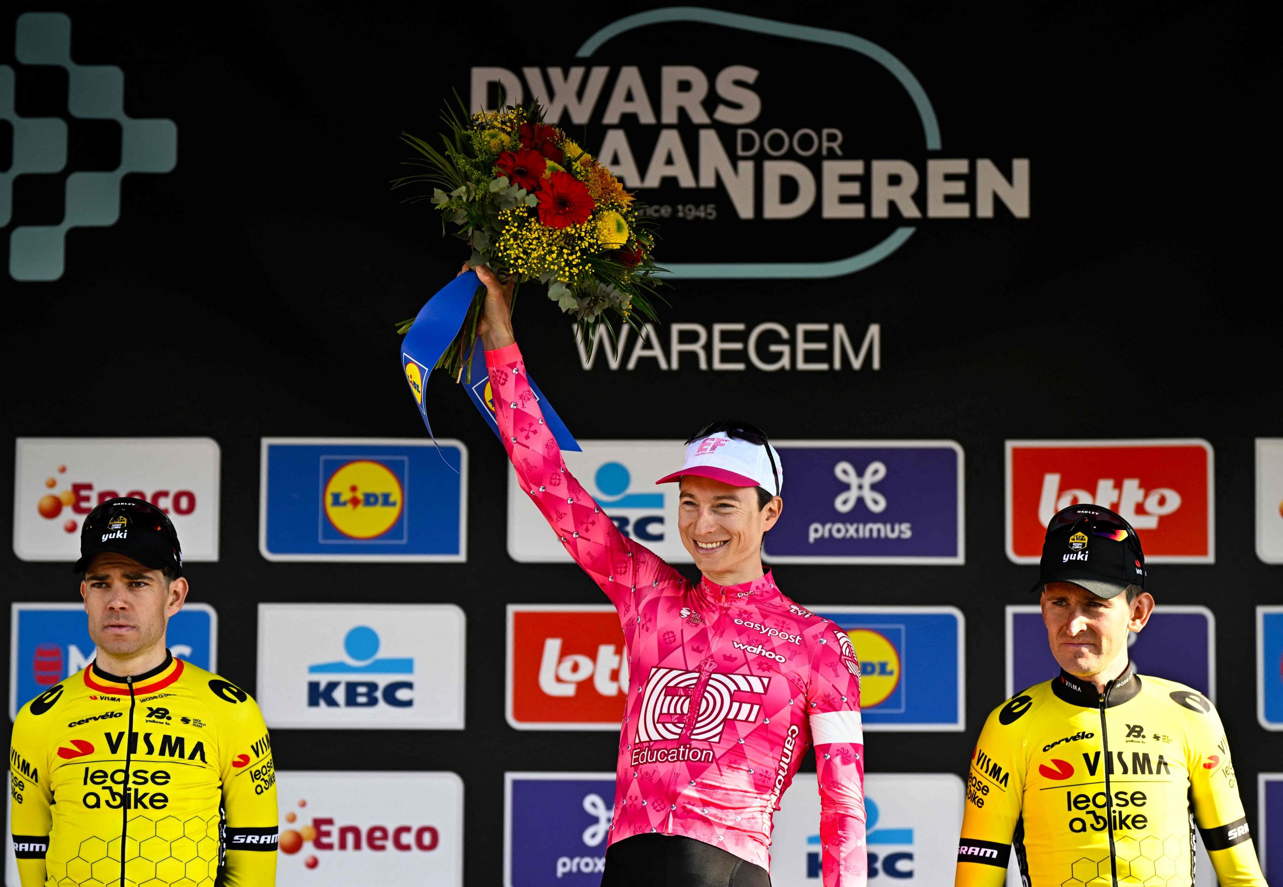 On attendait un réveil de l’équipe Visma-Lease a Bike ce mercredi dans À Travers la Flandre. Il a bien eu lieu, mais, Wout Van Aert, Matteo Jorgenson et Tiesj Benoot, ont sous-estimé Neilson Powless (EF Education), lequel a battu ce trio au sprint…