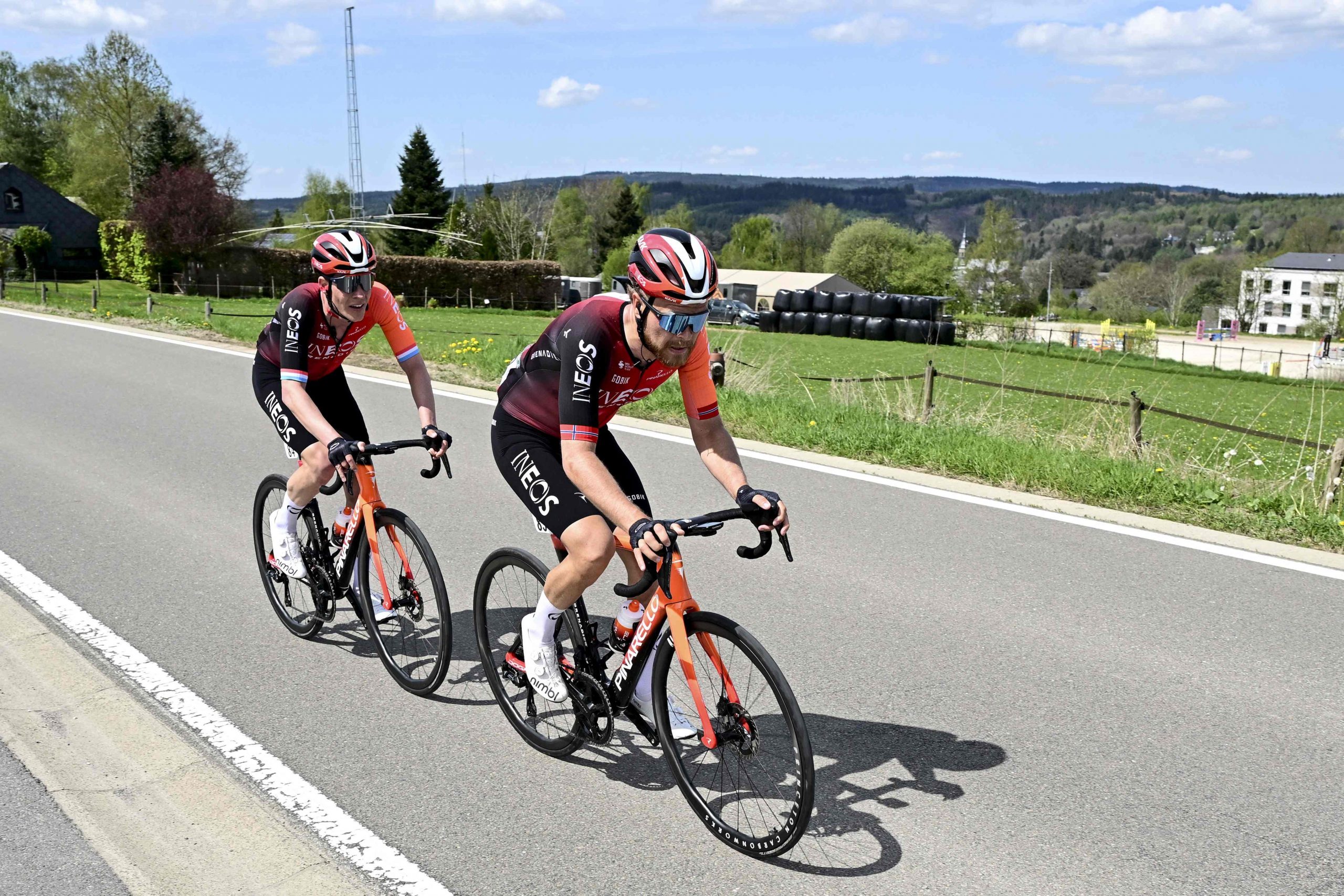 Bob Jungels et Tobias Foss (qui mène ici), sont restés intercalés pendant une grosse cinquantaine de kilomètres (Photo : AFP).