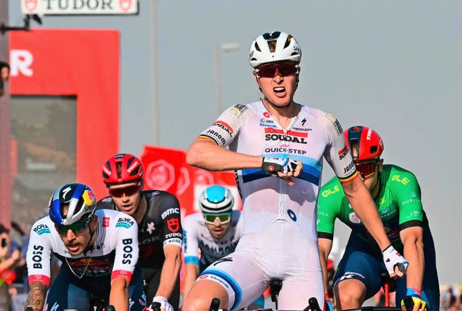 Dans un final chaotique émaillé de plusieurs chutes, le champion d’Europe de la Soudal-Quick Step s’est montré plus fort dans le long sprint, devançant Matteo Malucelli (XDS-Astana) et le vainqueur des première et quatrième étapes Jonathan Milan (Lidl-Trek). Le sprinteur de 32 ans lève les bras pour la troisième fois de la saison, après deux succès lors du Tour AlUla en janvier.