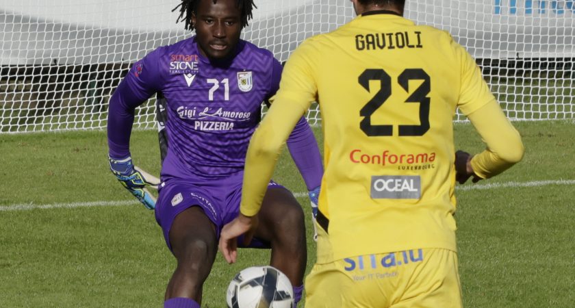 Cela fait trois journées que les hommes de Martin Forkel ne l’ont plus emporté et ce dimanche, c’est un sacré morceau en face avec le champion en titre. Qui met le pied sur le ballon face à un hôte recroquevillé à onze dans sa moitié de terrain, attendant le moment de pouvoir se projeter en contre, sans pour autant y parvenir. La première mi-temps est quand même très terne de la part de Differdange et surtout pauvre en occasions. Les deux équipes ressortent des vestiaires en mettant plus d’intensité dans le jeu, ce qui crée plus d’espaces, et c’est Differdange qui en profite pour ouvrir le score à la 55e. Abreu rentre à gauche et parvient, après cafouillage, à remettre en retrait pour Jakobi, qui ajuste sa frappe pour pousser le cuir au fond et donner l’avantage aux siens.
