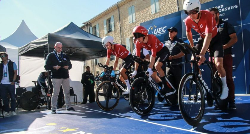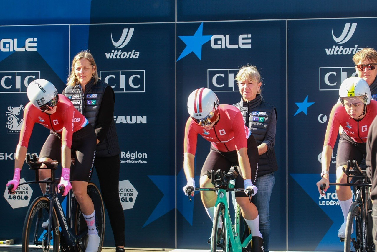Il s’agissait d’une première. Avec tout ce que cela comporte comme incertitudes. La journée de jeudi a d’ailleurs commencé avec une certitude imprévue. Marie Schreiber, souffrante depuis plusieurs semaines et en proie à des performances non conformes à son rang, a décidé, avec le staff luxembourgeois, de passer son tour. C’est Gwen Nothum, 23e, la veille du chrono individuel chez les espoirs qui fut appelé aux côtés de Nina Berton et Liv Wenzel.