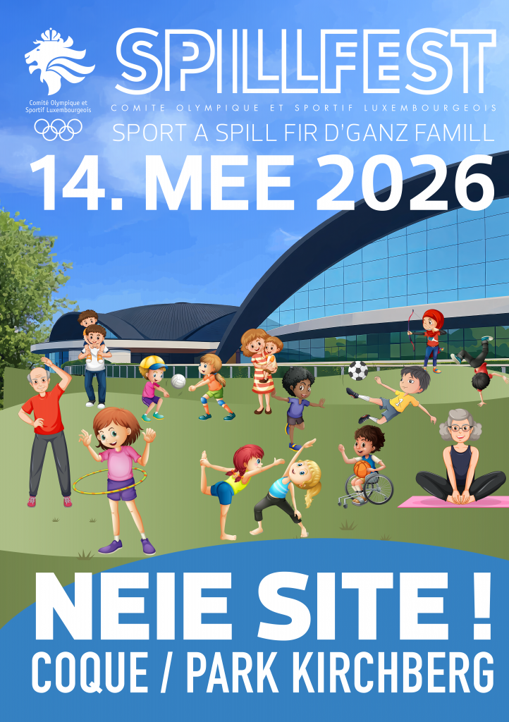 Le 14 mai 2026, à l’occasion de l’Ascension, le Comité Olympique et Sportif Luxembourgeois (COSL) invite à nouveau au traditionnel Spillfest et ouvre un nouveau chapitre. Pour la première fois, l’événement se tiendra à la Coque ainsi qu’au Parc Kirchberg. De 10h00 à 17h30, le site se transformera en un lieu de rencontre animé pour les passionnés de sport de tous âges.