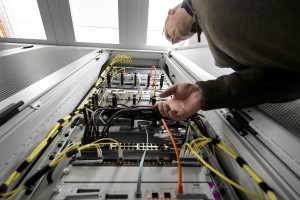 (FILES) A file picture taken on November 18, 2013 shows Deltalis’ Patrick Mueller checking on computer servers at the Deltalis Swiss Mountain Data Center, a former Swiss Army bunker built in the Alps during the Cold War, near Attinghausen, Central Switzerland. Switzerland, facing an erosion of the banking secrecy laws that helped make it the world’s banker, is now touting its reputation as a safe and stable haven to become a global data vault. AFP PHOTO / FABRICE COFFRINI