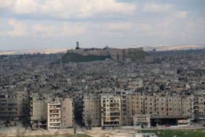A general view taken on March 3, 2015 shows the Aleppo Citadel (background) in the northern Syrian city of Aleppo. Once Syria’s commercial hub, Aleppo has been devastated by fighting that began in mid-2012, and the city is now split between loyalist forces and rebels. AFP PHOTO / AMC / ZEIN AL-RIFAI